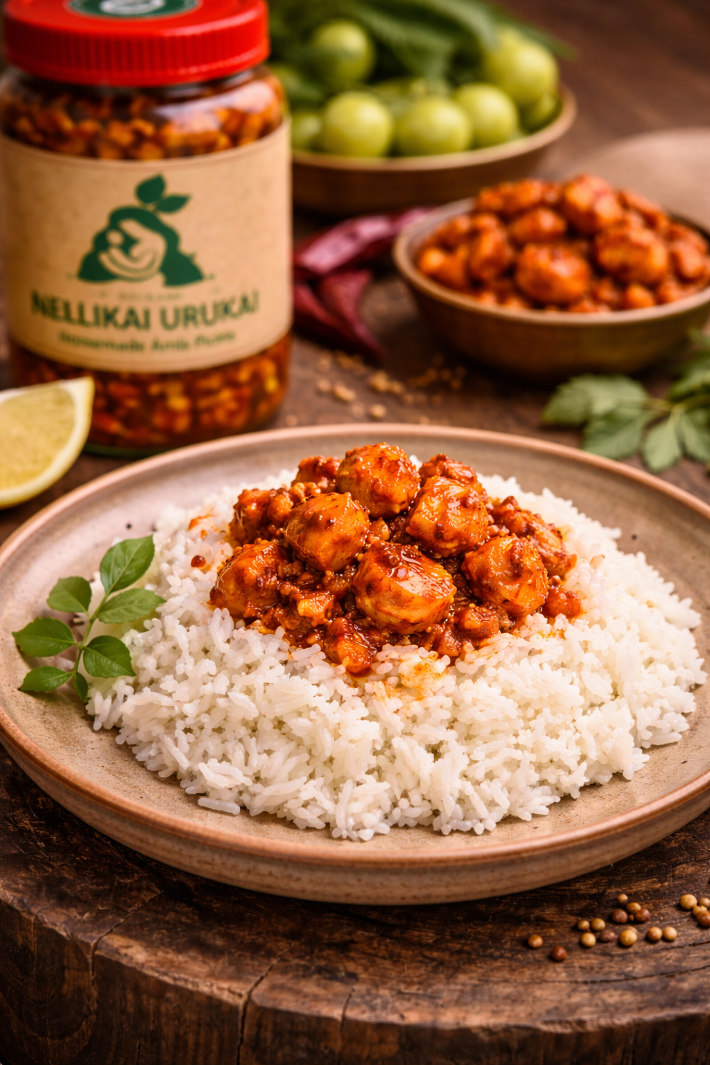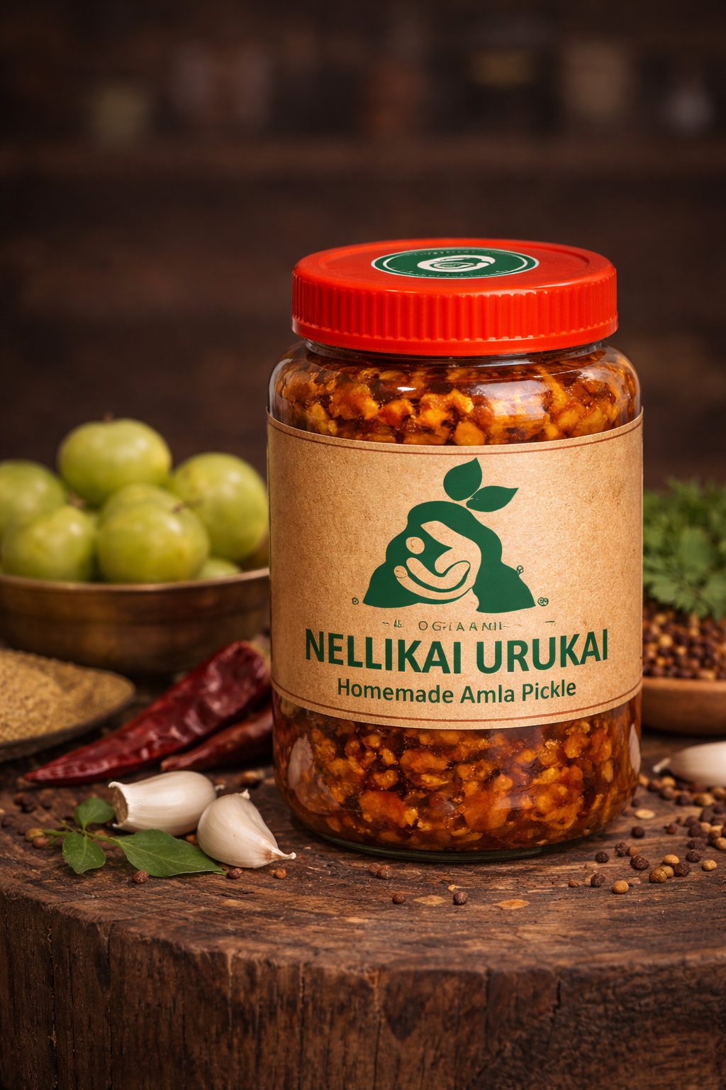Nellikai Urukai is a traditional South Indian homemade amla pickle made with fresh nellikai, cold-pressed oil, natural spices, and amma kai manam.